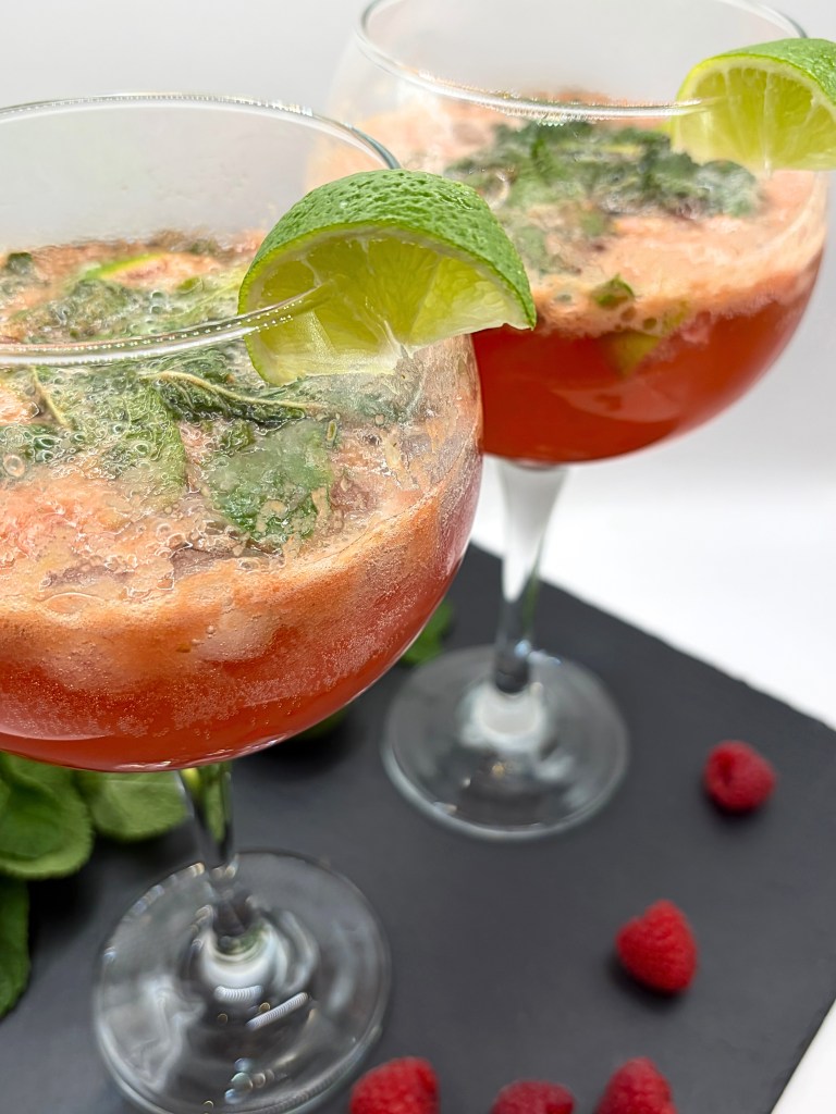 This Virgin Raspberry Mojito is perfect for this time of year. The weather is changing and we’re officially in Spring (finally)! This refreshing drink is crisp, cool, sparkling and low in calories (with the option to add alcohol). Grab a friend and take a break outside to relax and enjoy the sunshine together.
