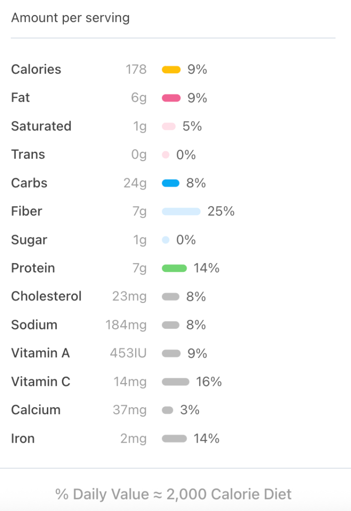 - Fiber- This recipe is rich in dietary fiber, which is essential for a healthy digestive system. The black beans and oats are excellent sources of fiber, which can help to maintain bowel health, lower cholesterol levels, and control blood sugar levels.