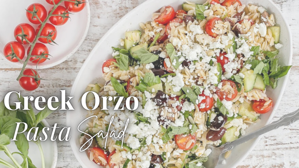 Heart Health- This recipe is rich in monounsaturated fats from the extra virgin olive oil and Kalamata olives. These fats are known to help reduce levels of ‘bad’ LDL cholesterol and increase ‘good’ HDL cholesterol, contributing to heart health. The fiber from orzo and vegetables like cucumbers and cherry tomatoes may also help maintain healthy cholesterol levels and support cardiovascular function.