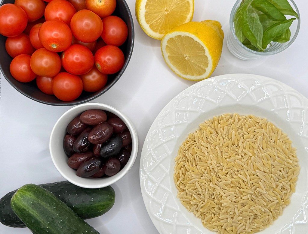 Orzo- The star ingredient in this salad. Although shaped like small grains of rice, it is actually a type of pasta commonly used in Mediterranean and Middle Eastern dishes.