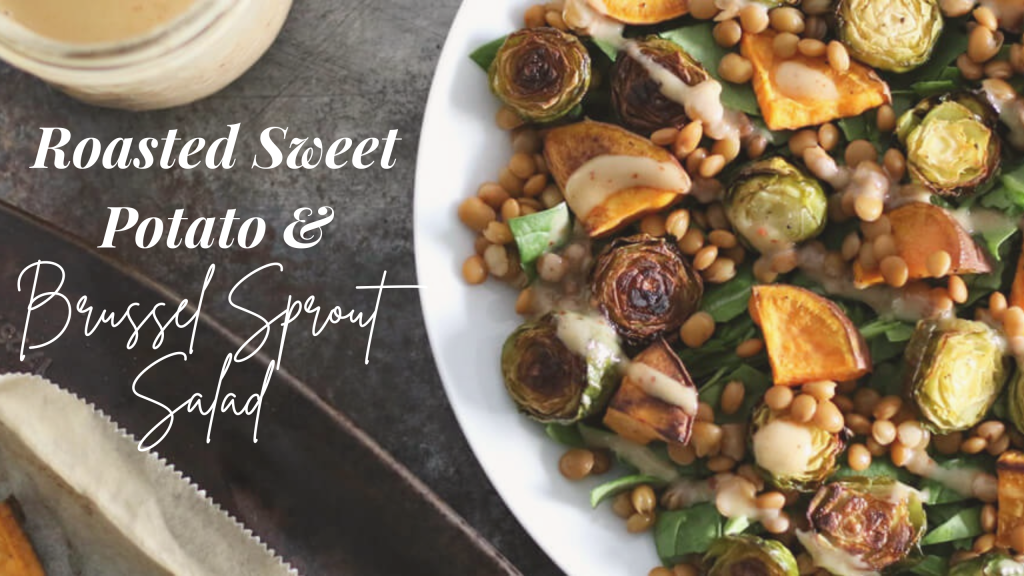 With fall in full swing, we’ve brought you a cozy roasted salad recipe, that utilizes some wholesome seasonal ingredients. These are some of the worlds healthiest superfoods, like sweet potatoes, brussels sprouts, lentils, and spinach – all tossed in a creamy tahini dressing. This protein packed, highly nutritious meal is great for repairing muscles after a workout and sure to leave you feeling satisfied.